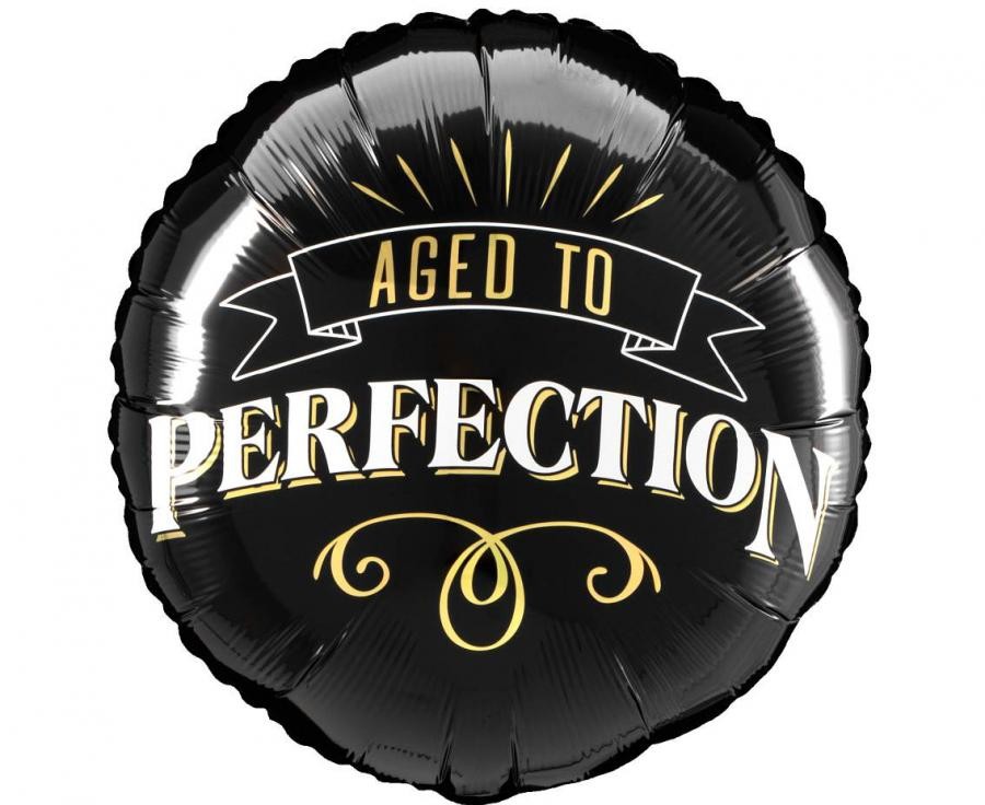 Questo impressionante palloncino in foil di 43 cm di diametro presenta due messaggi: da un lato "Aged to perfection" e dall'altro "Limited edition - Happy Birthday". Un look elegante in nero con raffinati accenti dorati e bianchi.