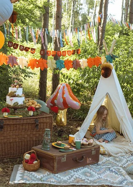 La ghirlanda include foglie nei colori arancione, verde, marrone e crema – colori ideali per compleanni autunnali, Halloween, il Giorno del Ringraziamento o eventi a tema.