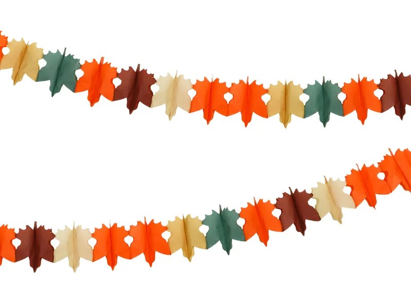 Aggiungi un tocco autunnale alla tua festa con questa ghirlanda in carta velina con foglie colorate. Adatta per decorare la casa, il giardino o la sala delle feste.